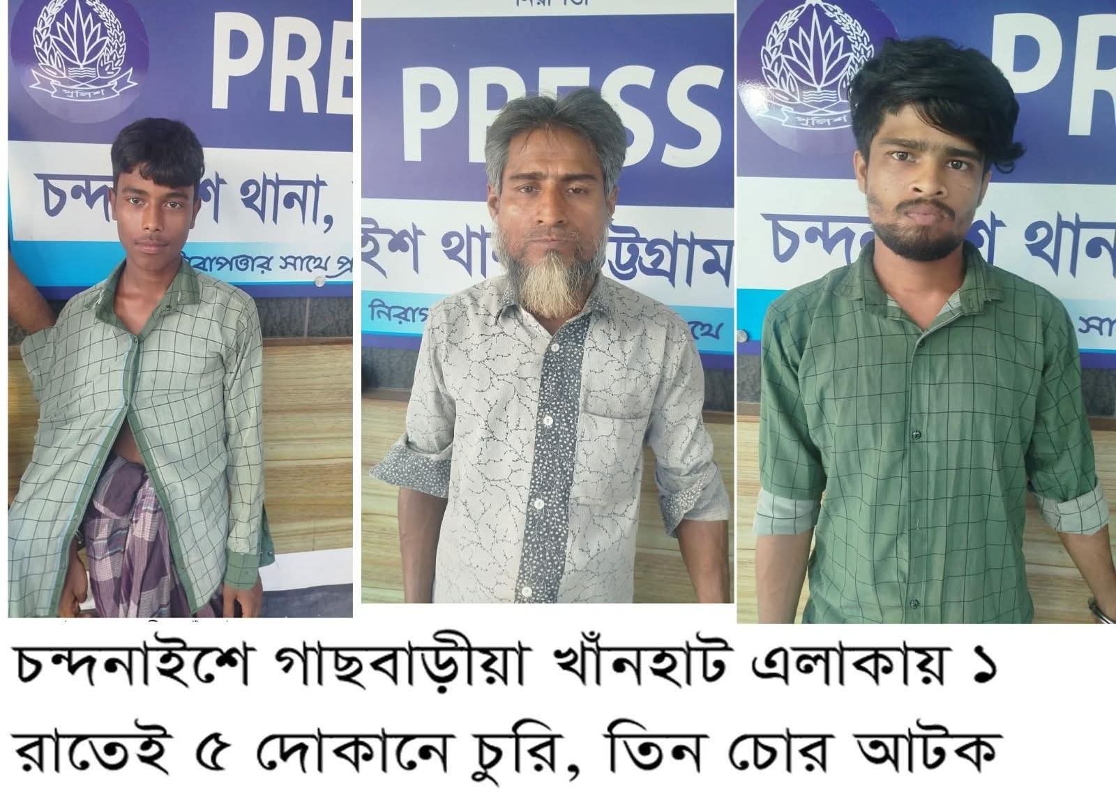 চন্দনাইশ উপজেলার গাছবাড়িয়া খাঁনহাট এলাকায় একই রাতে ৫টি দোকানে চুরির ঘটনা ঘটেছে। বেশ কয়েকটি দোকান থেকে নগদ টাকাসহ অন্যান্য জিনিসপত্র চুরি হয়েছে। একরাতে এতোগুলো দোকানে চুরির ঘটনায় আতঙ্কে রয়েছেন দোকান-মালিকরা। এই ঘটনায় তিন চোরকে স্থানীয় জনতার সহায়তায় পুলিশ আটক করেছে।