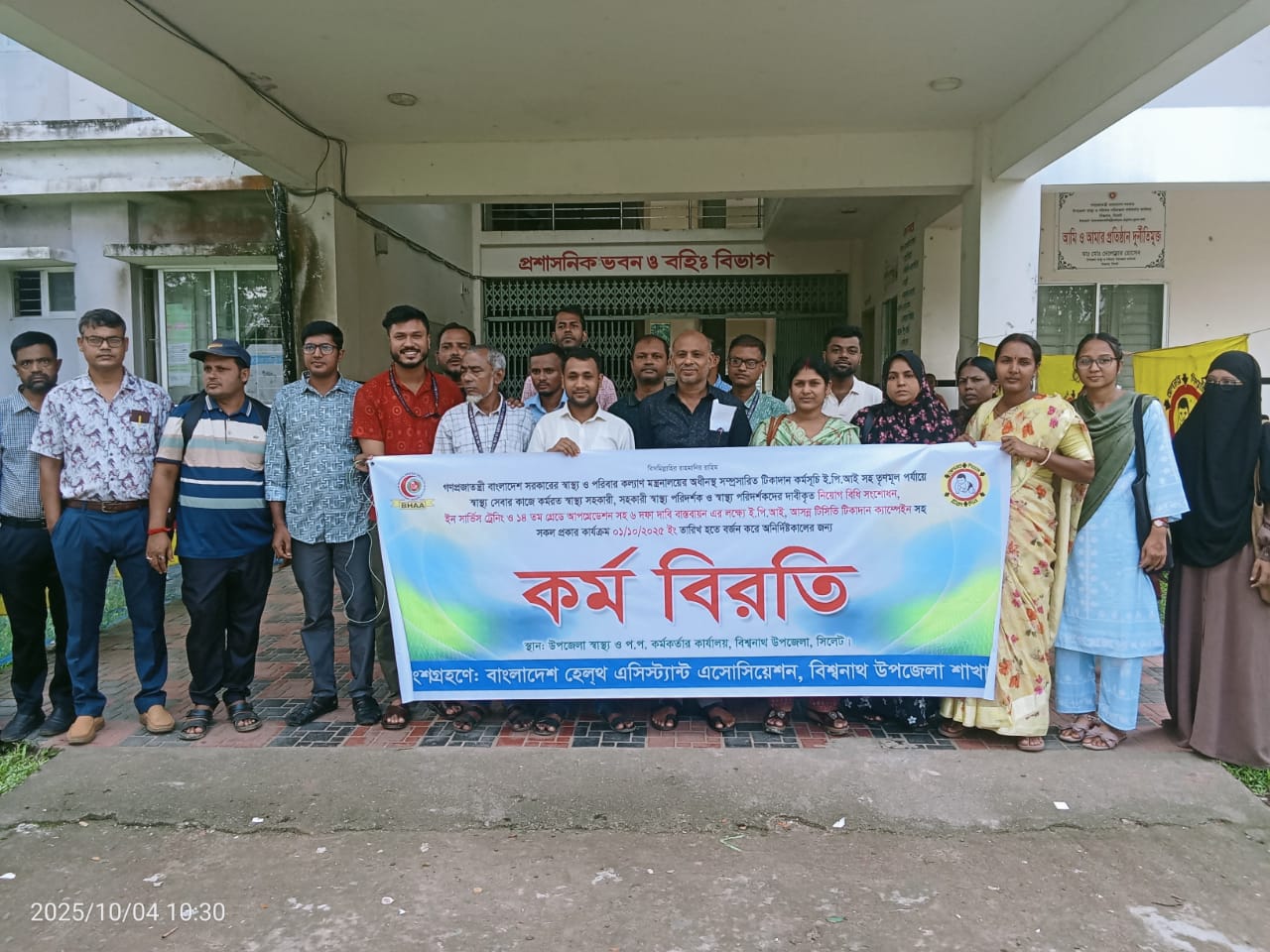 বিশ্বনাথ উপজেলা স্বাস্থ্য কমপ্লেক্সে আজ শনিবার ৪ অক্টোবর সারা বাংলাদেশে কেন্দ্রীয় কর্মসুচী মোতাবেক উপজেলা স্বাস্থ্য কমপ্লেক্সে বিগত ০১/১০/২৫, সকাল ৯টা থেকে বিকাল ৩ টা পর্যন্ত, ইপি আই টিকাদান,টিসিভি ক্যাম্পেইন,অনলাইন রেজিষ্ট্রেশন, রিপোর্ট রিটার্ন, অনলাইন, অফলাইন সহ যাবতীয় কর্মকাণ্ড বর্জন করা হয়েছে। উপজেলা স্বাস্থ্য কমপ্লেক্সেের সহকারী দিবাংশুগুনের সভাপতিত্বে ও স্বাস্থ্য সহাকারী মোঃ মুহিবুর রহমানের পরিচালনায় এ সভা অনুষ্ঠিত হয়।