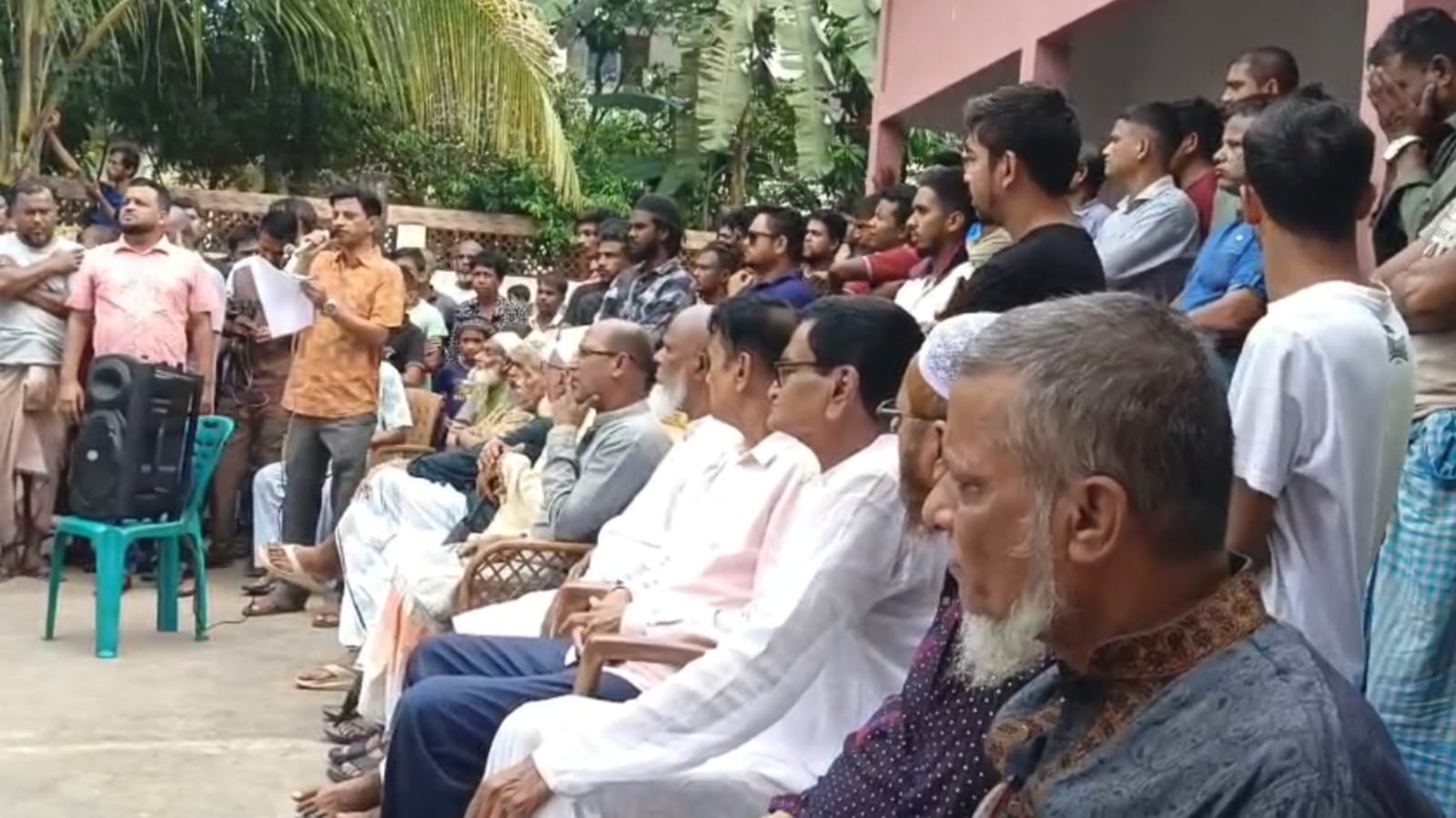 বক্তারা অভিযোগ করেন, উপজেলা নির্বাহী অফিসার (ইউএনও) সাহেব মহল্লার পঞ্চায়েত কমিটিকে সরাসরি অবমূল্যায়ন করে প্রশাসনিক ক্ষমতা খাটিয়ে একতরফাভাবে মীর আমান পক্ষের সমর্থনে সার্ভেয়ার দিয়ে ভূমির সীমানা নির্ধারণ করেছেন।