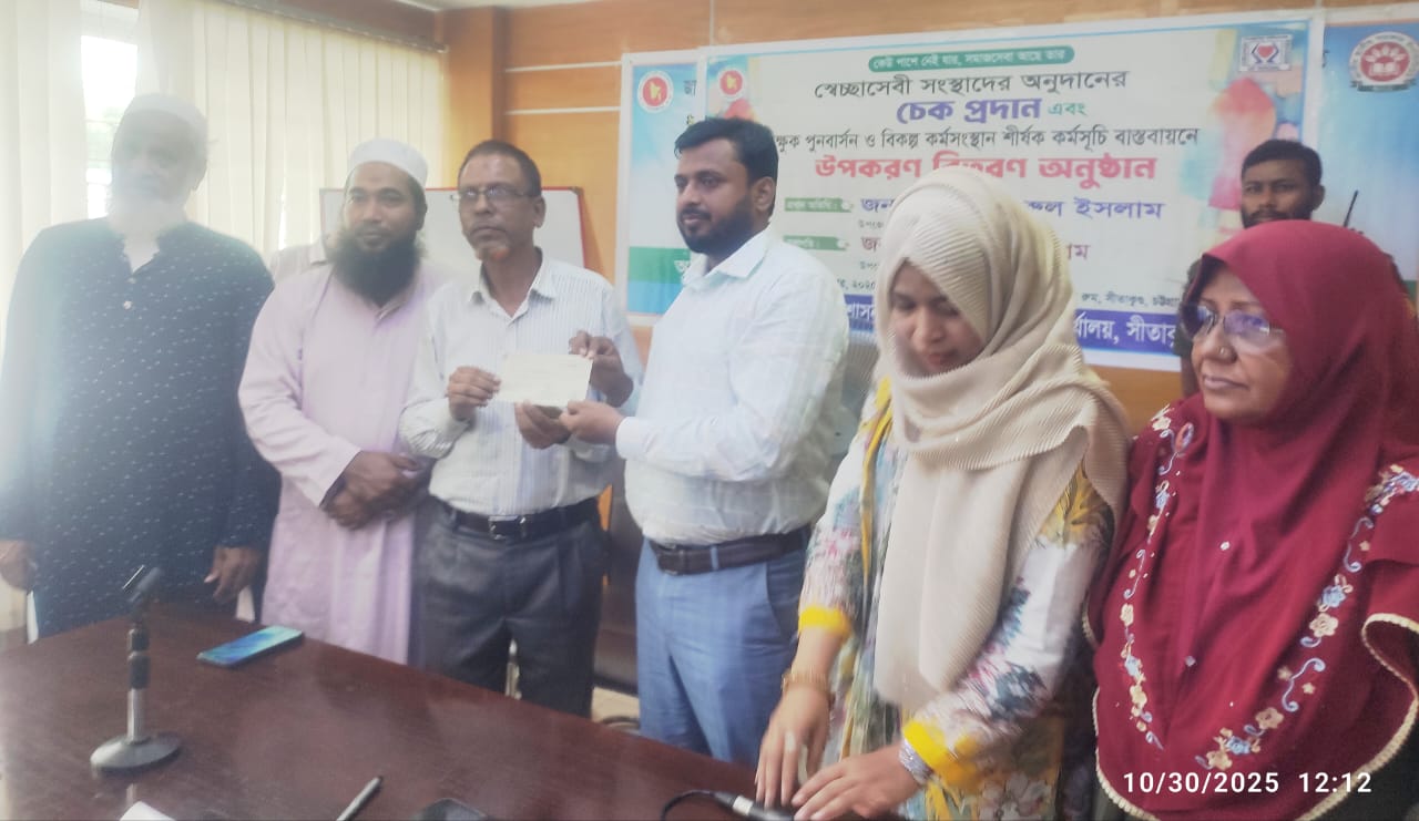 চট্টগ্রামের সীতাকুণ্ড উপজেলা প্রশাসন ও উপজেলা সমাজসেবা কার্যালয়ের আয়োজনে স্বেচ্ছাসেবী সংস্থাদের অনুদানের চেক প্রদান এবং