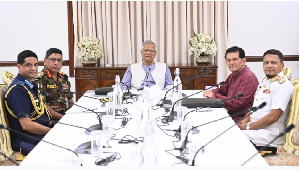 সাক্ষাতে নির্বাচনের জন্য সামরিক বাহিনীর প্রস্তুতির বিষয়ে প্রধান উপদেষ্টাকে অবহিত করেন তিন বাহিনীর প্রধান।