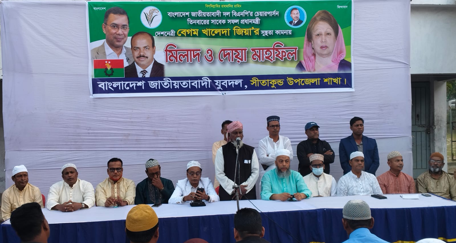 বিএনপির চেয়ারপার্সন ও তিনবারের সাবেক প্রধানমন্ত্রী বেগম খালেদা জিয়ার দ্রুত সুস্থতা কামনায় চট্টগ্রামের সীতাকুণ্ডে মিলাদ ও দোয়া মাহফিল অনুষ্ঠিত হয়েছে। শুক্রবার (৫ ডিসেম্বর) বিকেলে উপজেলার বাড়বকুণ্ড উচ্চ বিদ্যালয় মাঠে উপজেলা যুবদলের আয়োজনে উক্ত মিলাদ ও দোয়া মাহফিল অনুষ্ঠিত হয়। দোয়া মাহফিলে বিএনপি চেয়ারপারসন বেগম খালেদা জিয়ার দ্রুত সুস্থতা ও দীর্ঘায়ু কামনা করে বিশেষ মোনাজাত পরিচালনা করা হয়। পাশাপাশি বিএনপির প্রতিষ্ঠাতা শহীদ প্রেসিডেন্ট জিয়াউর রহমান, বিএনপির ভারপ্রাপ্ত চেয়ারম্যান তারেক রহমান, জিয়া পরিবারের সদস্যদের মঙ্গল কামনা করা হয়।