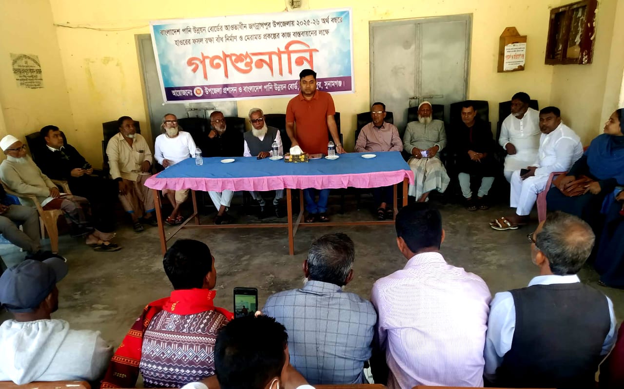 সুনামগঞ্জের জগন্নাথপুর উপজেলার সর্ববৃহৎ নলুয়ার হাওরসহ অন্যান্য হাওরের আগাম বোরো ফসল রক্ষা বাঁধ প্রকল্পের কাজ বাস্তবায়নের লক্ষ্যে গণশুনানী অনুষ্ঠিত হয়েছে।