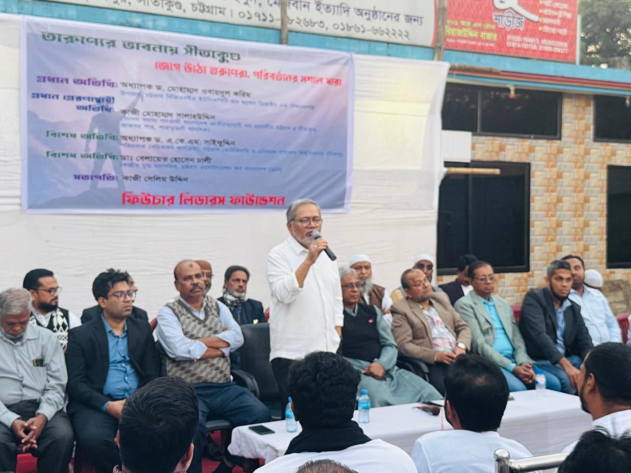 সীতাকুণ্ডের মুনস্টার কমিউনিটি সেন্টারে ৮ ডিসেম্বর ২০২৫ বিকাল তিনটায় “তারুণ্যের ভাবনায় সীতাকুণ্ড—জেগে উঠো তরুণেরা, পরিবর্তনের মশাল ধরো” শীর্ষক আলোচনা সভা অনুষ্ঠিত হয়েছে।