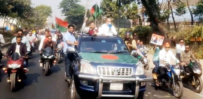 সীতাকুণ্ডে আসলাম চৌধুরীর সমর্থকদের বিশাল বিজয় র ্যালী