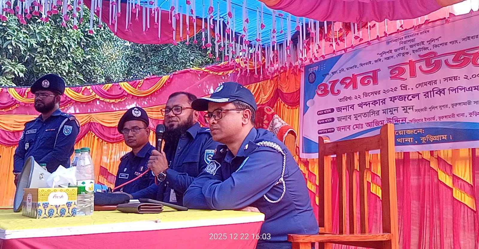 কুড়িগ্রামের ভূরুঙ্গামারীতে “জনতাই পুলিশ, পুলিশই জনতা”—এই স্লোগানকে সামনে রেখে অপরাধ দমন ও আসন্ন জাতীয় সংসদ নির্বাচনকে ঘিরে জনসচেতনতা বৃদ্ধির লক্ষ্যে ভূরুঙ্গামারী থানা পুলিশের আয়োজনে ওপেন হাউজ ডে অনুষ্ঠিত হয়েছে। সোমবার (২২ ডিসেম্বর) দুপুর ২টায় ভূরুঙ্গামারী থানা চত্বরে এ কর্মসূচি অনুষ্ঠিত হয়।