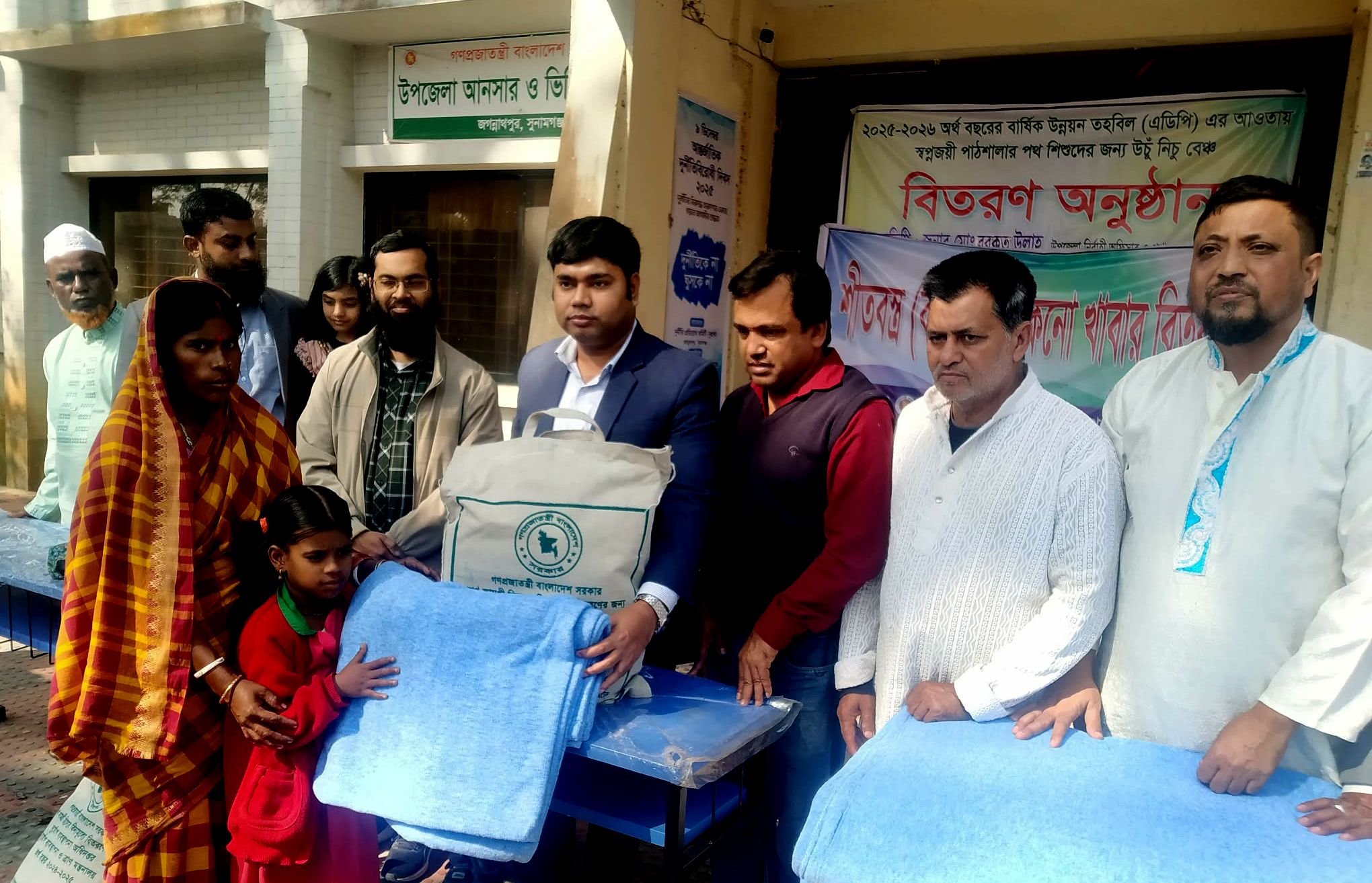 (২৭ ডিসেম্বর) শনিবার দুপুরে উপজেলা পরিষদ প্রাঙ্গনে কম্বল, শুকনো খাবার ও স্কুল ব্র্যাঞ্চ বিতরণ উপলক্ষ্যে আলোচনাসভা অনুষ্ঠিত হয়েছে। জগন্নাথপুর উপজেলা নির্বাহী কর্মকর্তা মো.বরকত উল্লাহ এর সভাপতিত্বে অনুষ্ঠিত সভায় বক্তব্য রাখেন, উপজেলা সহকারী কমিশনার (ভূমি) মো.মহসীন উদ্দিন, উপজেলা প্রকৌশলী (এলজিইডি) সোহরাব হোসেন, উপজেলা একাডেমিক সুপারভাইজার অরূপ কুমার রায়, সিনিয়র সাংবাদিক তাজ উদ্দিন আহমদ, জগন্নাথপুর উপজেলা প্রেসক্লাব সাধারণ সম্পাদক মো.শাহজাহান মিয়া, সাংবাদিক হুমায়ূন কবির, শাহ ফুজায়েল আহমদ, স্বপ্নজয়ী স্কুলের শিক্ষক সোনিয়া বেগম প্রমূখ।