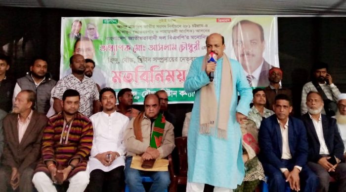 হিন্দু বৌদ্ধ খ্রীষ্টান ঐক্য ফ্রন্টের সভাপতি রতন কুমার নাথের সভাপতিত্বে ও গোপাল শর্মার সঞ্চালনায় উক্ত মতবিনিময় সভায় অন্যান্যদের মধ্যে বক্তব্য রাখেন আসলাম চৌধুরীর কন্যা মেহরীন আনহার উজমা, হিন্দু বৌদ্ধ খ্রীষ্টান ঐক্য ফ্রন্টের কেন্দ্রীয় কমিটির ধর্ম বিষয়ক সম্পাদক ঝুলন কান্তি রায়, বিভাগীয় সাংগঠনিক সম্পাদক রাজিব ধর তমাল, উত্তর জেলা কমিটির আহবায়ক জিতেন্দ্র নারায়ন দাশ নাটু, সদস্য সচিব জুয়েল চক্রবর্তী, মনোজ কুমার নাথ, অমলেন্দু কনক, সুকুমার ত্রিপুরা, সুশিল দাশ, অমরেন্দু ভট্টাচার্য, নন্দন চক্রবর্তী, মোহন পাল, ধ্রুব কুমার দাম, সানন্দা সাগর, দুলাল বড়ুয়া।