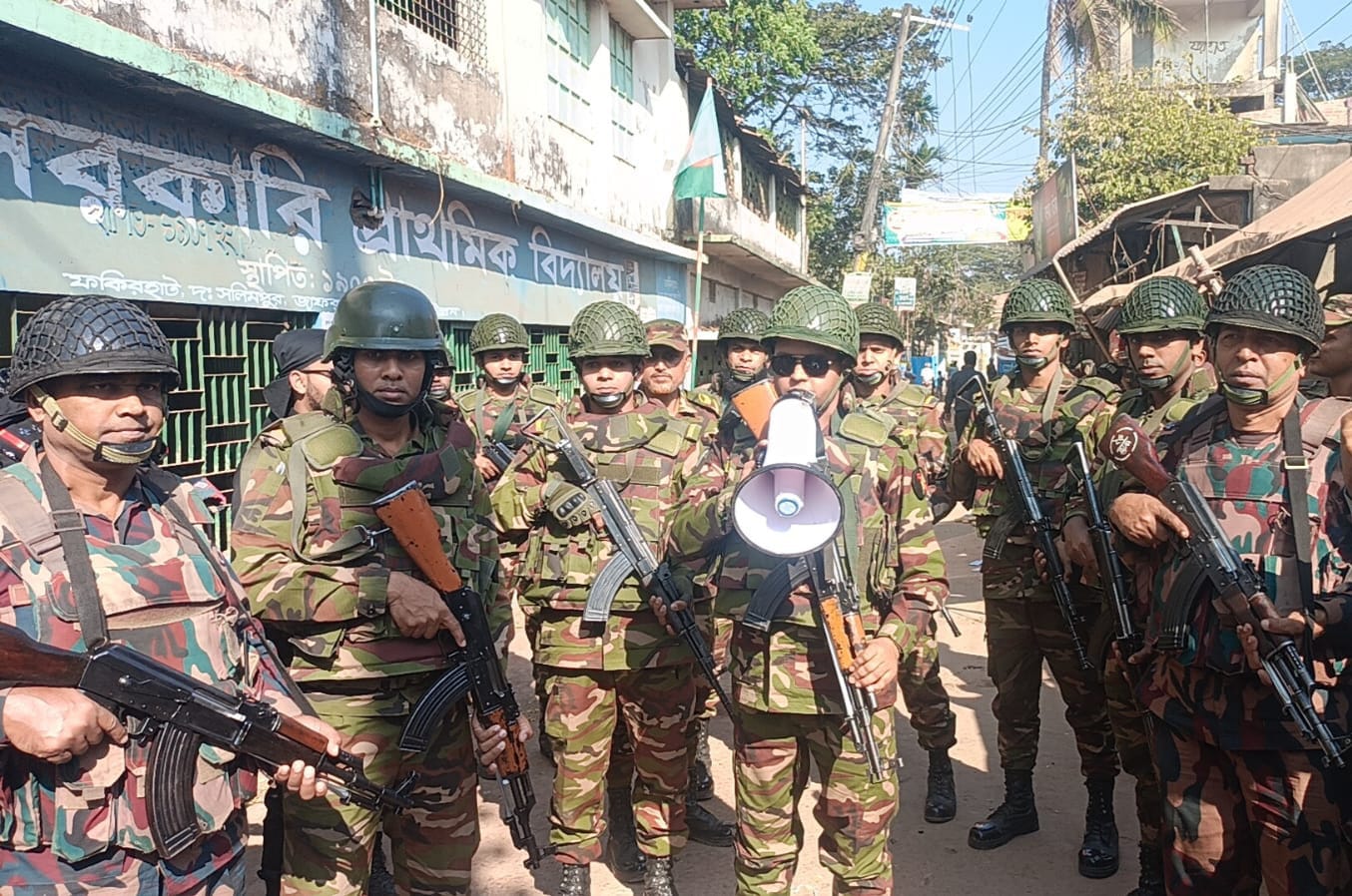 যৌথ বাহিনীর সূত্রে জানাযায়, ত্রয়োদশ সংসদ নির্বাচন সুন্দর সুষ্ঠভাবে সম্পন্ন করতে সরকার বদ্ধ পরিকর। কেউ যদি নির্বাচন বানচাল করতে বা কেন্দ্র দখল চেষ্টা করে তড়িৎ গতিতে যৌথবাহিনি মোকাবেলা করবে।তা এ্যাকশান কঠোরও হতে পারে।