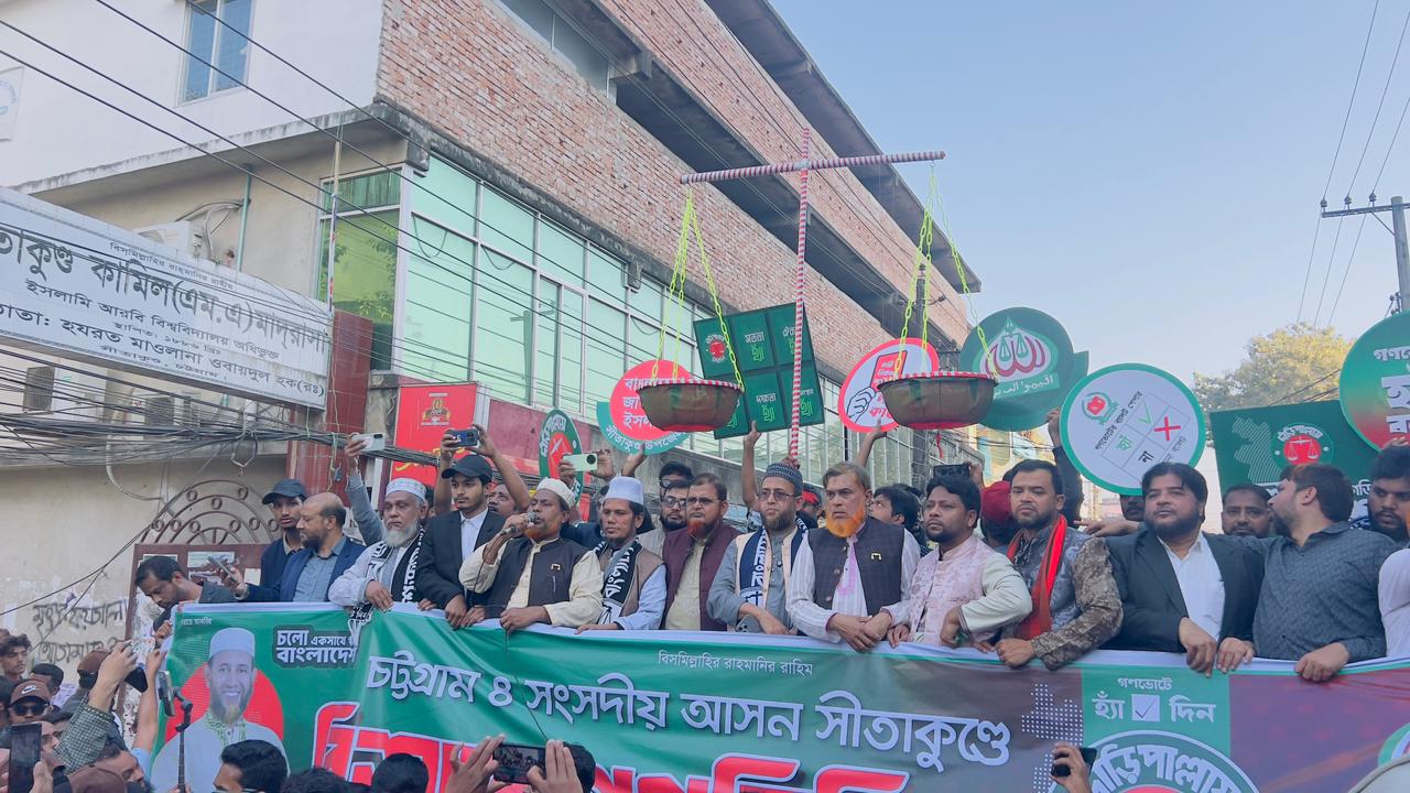 অপরদিকে বিকাল সাড়ে ৩ টায় বাংলাদেশ জামায়াতে ইসলাম দাঁড়িপাল্লার প্রার্থী সমর্থনে এক বিশাল গন মিছিল হাসান গোমস্তা জামে মসজিদের সামনে থেকে বাইপাস সড়ক হয়ে পূনরায় সিকিউর সিটি শপিং সেন্টারের সামনে এসে এক পথ সভা অনুষ্ঠিত হয়।