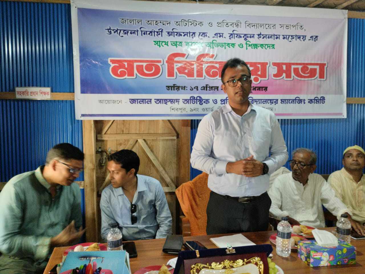 আজ বুধবার (১৭ এপ্রিল) সকাল ১১টায় পৌরসভার ৯নং ওয়ার্ড শিবপুরস্হ জালাল আহম্মদ অটিস্টিক ও প্রতিবন্ধী বিদ্যালয়ের সহ-সভাপতি সীতাকুণ্ড প্রেসক্লাবের সিনিয়র সাংবাদিক মীর মোঃ দিদারুল হোসেন টুটুলের সভাপতিত্বে প্রধান অতিথি ছিলেন অত্র স্কুলের সভাপতি উপজেলা নির্বাহী অফিসার কে এম রফিকুল ইসলাম,প্রধান বক্তা বিশিষ্ট শিক্ষাবিদ সীতাকুণ্ড সডেল সরকারী হাইস্কুলের সাবেক প্রধান শিক্ষক নজির আহমদ,প্রধান আলোচক সীতাকুণ্ড প্রেসক্লাবের সভাপতি ও স্কুলের সহ-সভাপতি সুব্রত চক্রবর্তী সৌমিত্র,বিশেষ অতিথি ও স্কুলের সহ-সাধারণ সম্পাদক লিটন কুমার চৌধুরী।শুভেচ্ছা বক্তব্যে রাখেন স্কুলের প্রধান শিক্ষক তপন চক্রবর্তী।