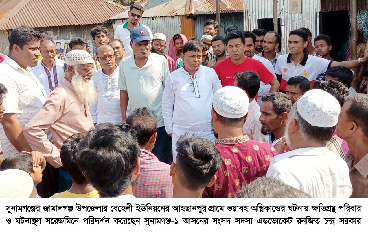 সুনামগঞ্জের জামালগঞ্জ উপজেলার বেহেলী ইউনিয়নের আহছানপুর গ্রামে ভয়াবহ অগ্নিকান্ডের ঘটনায় ক্ষতিগ্রস্থ পরিবার ও ঘটনাস্থল সরেজমিনে পরিদর্শন করেছেন সুনামগঞ্জ-১ আসনের সংসদ সদস্য এডভোকেট রনজিত চন্দ্র সরকার।