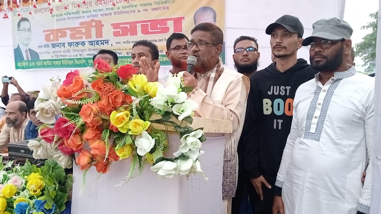 বৃহস্পতিবার বিকেলে উপজেলার জাউয়াবাজার ইউনিয়নের কৈতক ডাকবাংলো পয়েন্টে ৯নং ওয়ার্ড বিএনপির সাবেক সভাপতি ও বিএনপি নেতা হাজী সিরাজুল ইসলাম’র সভাপতিত্বে ও বিএনপি নেতা জামিল আহমেদ এবং জসিম উদ্দিন’র যৌথ পরিচালনায় অনুষ্টিত কর্মী সভায় প্রধান অতিথি হিসেবে বক্তব্য রাখেন, ছাতক উপজেলা বিএনপির সাবেক আহবায়ক, সুনামগঞ্জ জেলার সদ্য গঠিত বিএনপির আহবায়ক কমিটির সদস্য আলহাজ্ব ফারুক আহমদ।