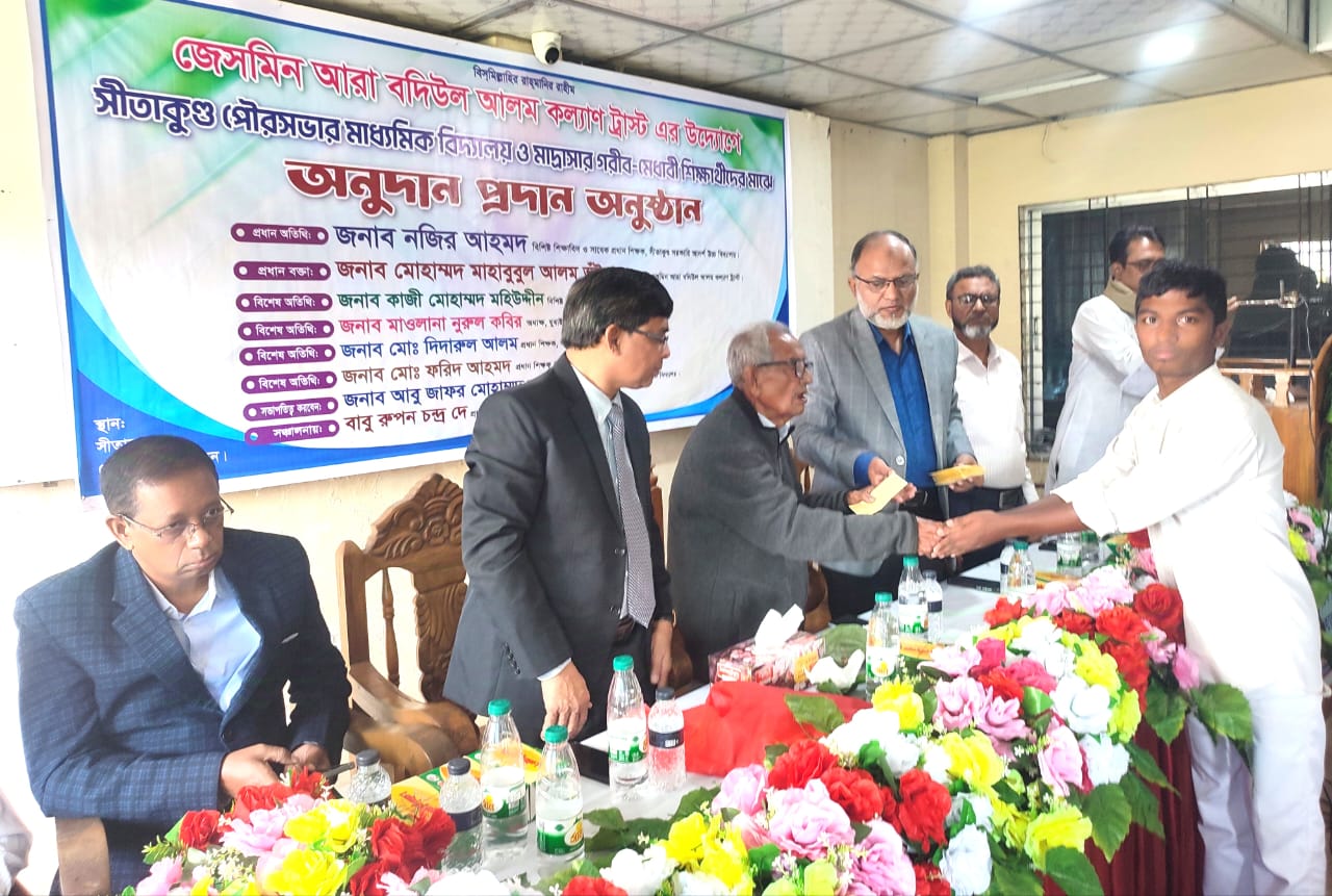 চট্টগ্রাম সীতাকুণ্ডে জেসমিন আরা বদিউল আলম কল্যাণ ট্রাস্টের উদ্যোগে উপবৃত্তি প্রদান অনুষ্ঠান অনুষ্ঠিত হয়েছে। গতকাল শনিবার সকাল সাড়ে দশটায় সীতাকুণ্ড প্রেসক্লাবের মিলনায়তনে মাধ্যমিক বিদ্যালয় ও মাদ্রাসার মেধাবী ৩০ জন শিক্ষার্থীদের মাঝে আড়াই হাজার টাকা করে নগদ অর্থ অনুদান প্রদান করা হয়।