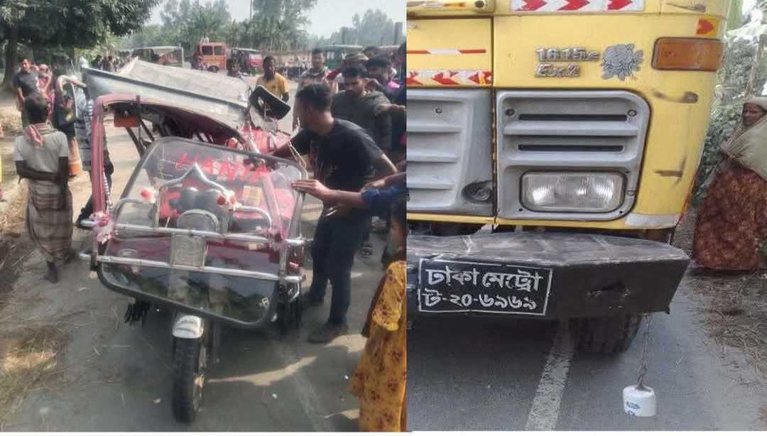 কুড়িগ্রাম ভূরুঙ্গামারীতে ট্রাক ও অটোরিক্সার মুখোমুখি সংঘর্ষে মা মেয়ে ২ জন নিহত এবং ৪ জন যাত্রী গুরুতর আহত হয়েছে। বুধবার (১১ ডিসেম্বর ) দুপুরে উপজেলার সোনাহাট স্থলবন্দরগামী ঘুণ্টিঘর নামক স্থানে ভূরুঙ্গামারী -সোনাহাট মহাসড়কে এ দুর্ঘটনা ঘটে। নিহতরা হলেন ভূরুঙ্গামারী উপজেলার বঙ্গসোনাহাট ইউনিয়নের মাহিগঞ্জ চান্দনীয়া গ্রামের মোহাম্মদ আলীর কন্যা মুন্নী আক্তার(২৫) ও তার স্ত্রী মোমেনা বেগম(৪৫)