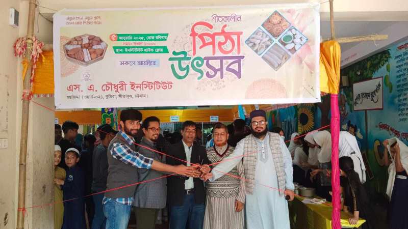 প্রতি বছরের মত এবারও গ্রামীন ঐতিহ্যের শতরকমের পিঠার সমন্বয়ে শুরু হয়েছে দিন ব্যাপী পিঠা উৎসব। রবিবার সকাল ১০টায় স্কুল মিলনায়তনে অনুষ্ঠিত পিঠা উৎসব উদ্বোধন করেন সীতাকুণ্ড কিন্ডারগার্টেন এসোসিয়েশন এর সভাপতি বিশিষ্ট সাংবাদিক মোঃ জাহাঙ্গীর আলম বিএসসি, এসময় আরও উপস্থিত ছিলেন এস এ চৌধুরী ইনস্টিটিউট এর সহ সভাপতি জাফর আহমেদ, সাবেক প্রধান শিক্ষক প্রভাষক মোহ মেজবাহ উদ্দিন, স্কুলের প্রধান শিক্ষক আতাউর রহমান, প্রমুখ। এই পিঠা উৎসবে স্কুলের অভিভাবকদের স্বতঃস্ফূর্ত অংশগ্রহণে পুরো ক্যাম্পাস মুখরিত হয়ে উঠে। শতশত শিক্ষার্থী ও অভিভাবকদের অংশগ্রহণে পিঠা উৎসবে কয়েক ঘন্টায় ২০টি স্টলের সব পিঠা বিক্রি শেষ হয়ে যায়।অনেকেই ২য় বার আবার স্টলে পিঠা আনতে দেখা গেছে।