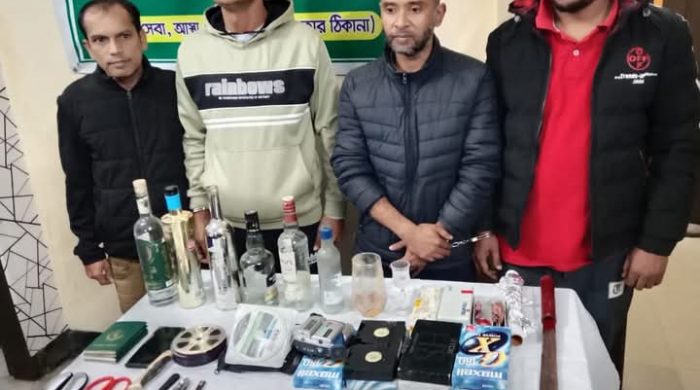 অভিযানকালে বাসা থেকে ১। ইমাদ উদ্দিন আহমেদ (৩৮), পিতা-মৃত:আব্দুল মুক্তাদির প্রকাশ বুলবুল আহমদ, সাং-বাসা নং-নূরানী-৫২, বনকলাপাড়া, থানা-এয়ারপোর্ট, জেলা-সিলেট, ২। মাহমুদ আলী (৪৪), পিতা-মৃত সিকন্দর আলী, সাং-মিরাপাড়া, বাসা নং-১০৮, থানা-শাহপরাণ (রহ:), জেলা-সিলেট, ৩। রিপন (৪৬), পিতা-মৃত নেদারুল ইসলাম, সাং-গাজীপুর, থানা-ফেঞ্চুগঞ্জ, জেলা-সিলেট, ৪। মুজিবুর রহমান সনি (২৭), পিতা-আমিন মিয়া, সাং-বাসা নং-৫০/১, বাদামবাগিচা, থানা-এয়ারপোর্ট, জেলা-সিলেটদের গ্রেফতার করা হয়।