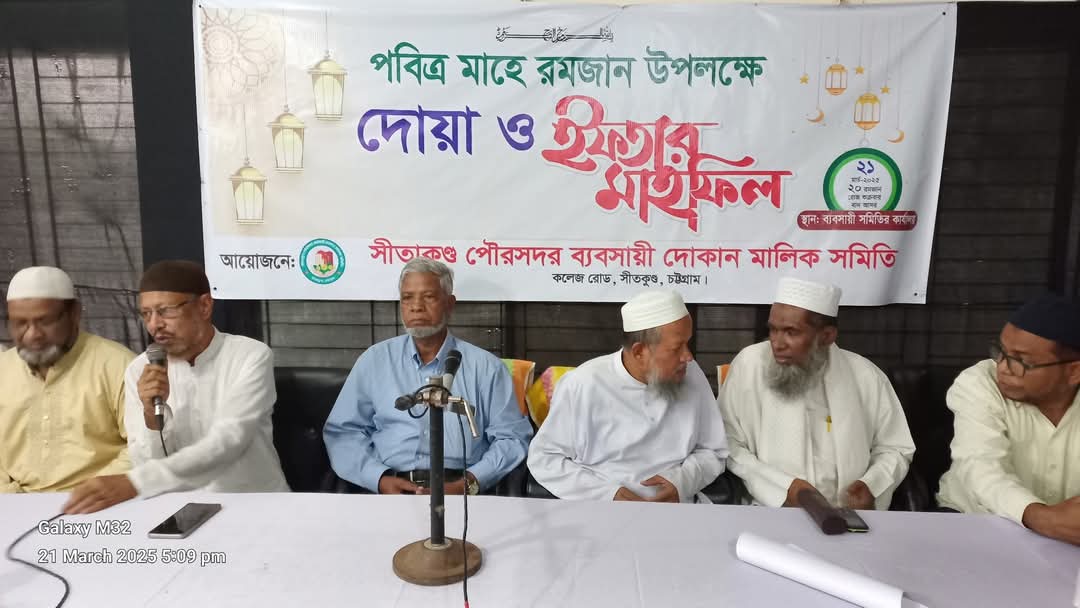 সীতাকুণ্ড পৌরসদর ব্যবসায়ী দোকান মালিক সমিতির কার্যালয়ে কার্যনির্বাহী কমিটির আয়োজনে পবিত্র মাহে রমাদান উপলক্ষে দোয়া মাহফিল ও ইফতারের আয়োজন করা হয়েছে।