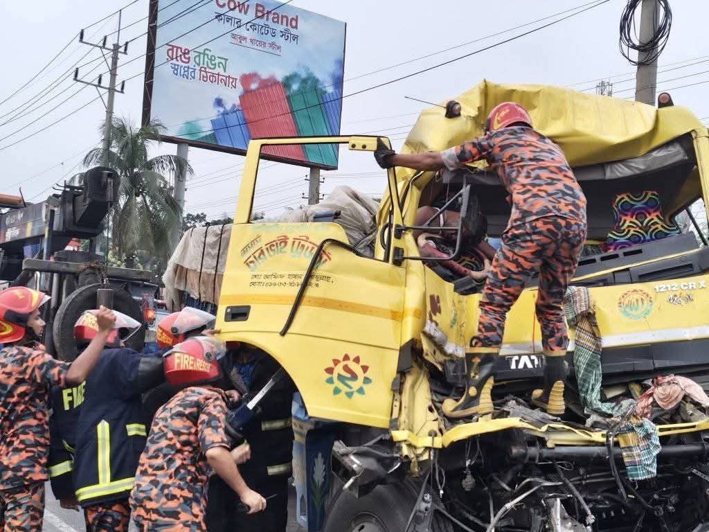 দূর্ঘনটার খবর পেয়ে সাথে সাথে কুমিরা ফায়ার সার্ভিস দূত ঘটনাস্হলে গিয়ে ট্রাকের সামনে বডি কেটে চালক হেল্পার কে উদ্ধার করে সীতাকুণ্ড হাসপাতালে