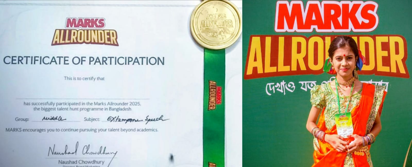 পতেঙ্গা পাবলিক স্কুল এন্ড কলেজের ৭ম শ্রেণীর শিক্ষার্থী শ্রীকর্না ধর মার্কস অল রাউন্ডার প্রতিযোগিতায় অংশ নিয়ে হাজারো প্রতিযোগিদের মাঝে নাচ,আবৃত্তি ও উপস্থিত বক্তৃতায় সমান তালে লড়ে পরবর্তী পর্বে জায়গা করে নেন।
