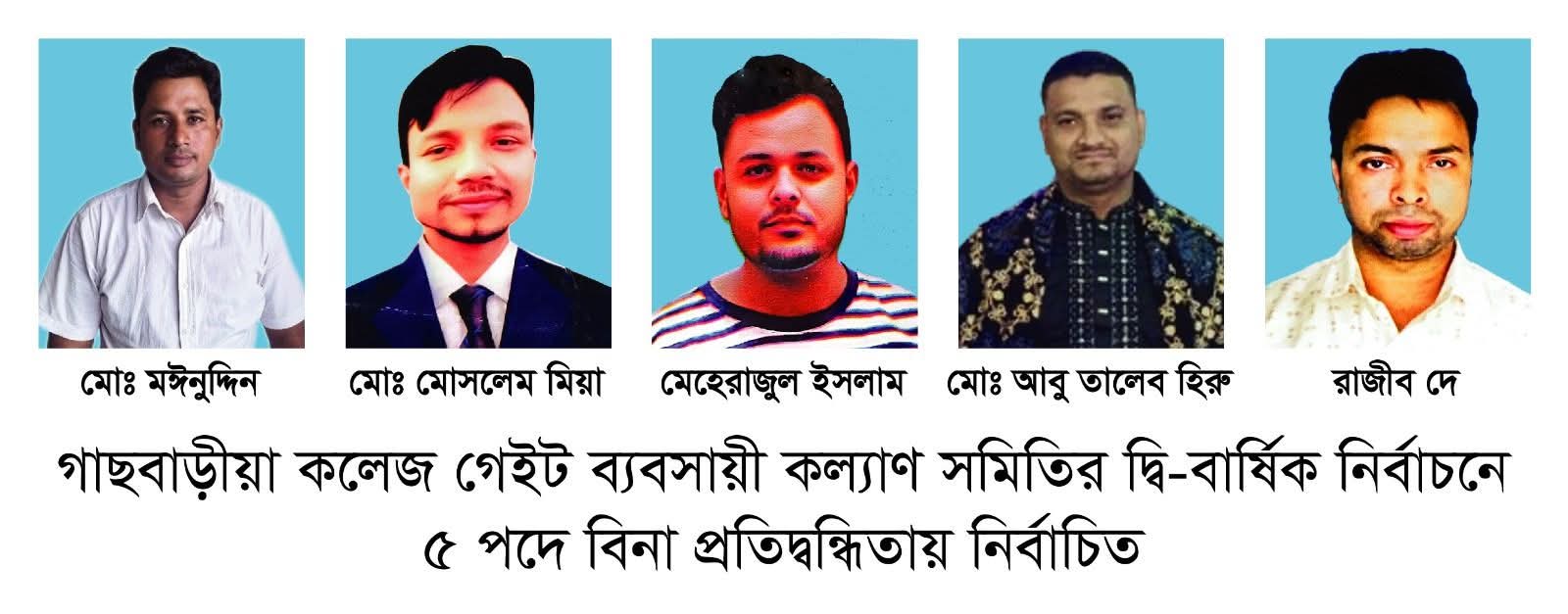 চন্দনাইশ উপজেলার গাছবাড়ীয়া কলেজ গেইট ব্যবসায়ী কল্যাণ সমিতির দ্বি-বার্ষিক নির্বাচনে ৫ পদে বিনা প্রতিদ্বন্দ্বিতায় নির্বাচিত হয়েছেন। আগামীকাল ২৬ সেপ্টেম্বর (শুক্রবার) বাকি ৪ পদের গাছবাড়িয়া নিত্যানন্দ গৌরচন্দ্র সরকারি মডেল উচ্চ বিদ্যালয় প্রাঙ্গণে ভোট গ্রহণ করা হবে। ১৫ সেপ্টেম্বর ছিল মনোনয়নপত্র জমাদানের শেষ দিন। এদিন ৫টি পদে অন্য কেউ মনোনয়নপত্র জমা না দেয়ায় তারা নির্বাচিত হয়েছেন।